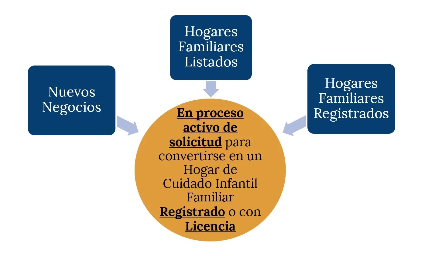 Esta oportunidad competitiva está disponible para proveedores con una solicitud activa ante la Comisión de Servicios de Salud y Humanos (HHSC, por sus siglas en inglés) a través de la Regulación de Cuidado Infantil (CCR, por sus siglas en inglés) para convertirse en un hogar de cuidado infantil familiar registrado o con licencia. Los proveedores de cuidado infantil familiar (FCC, por sus siglas en inglés) que serán elegibles para las Mini-Subvenciones de Inicio FCC son aquellos que avanzan de registrados a con licencia, de listados a registrados o con licencia, o nuevos proveedores FCC que buscan registrarse o obtener licencia. Los solicitantes deben ser miembros de la Red de Cuidado Infantil Familiar de Texas y pasar las verificaciones de antecedentes requeridas para la obtención del permiso a fin de ser considerados para el financiamiento.